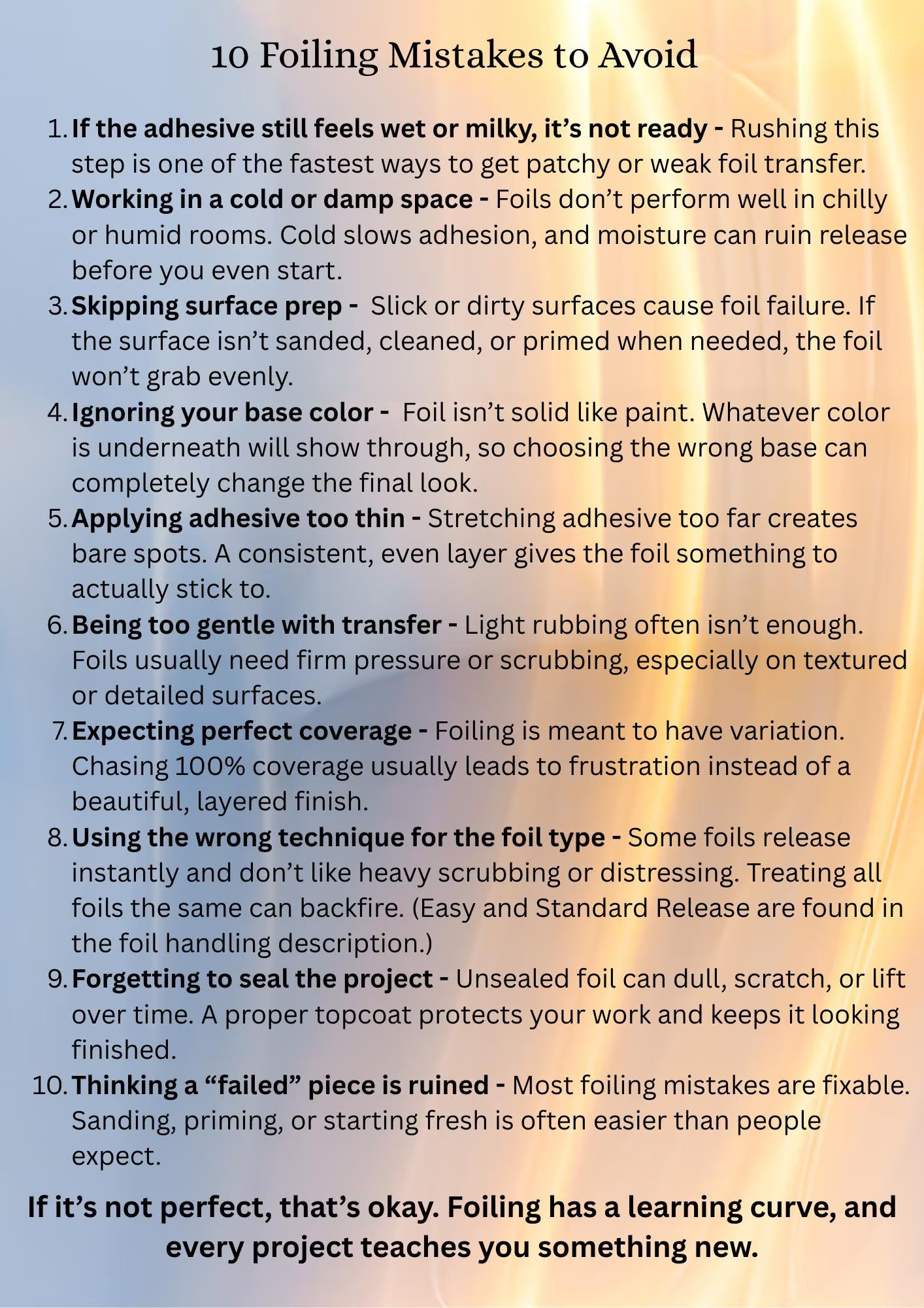 Standard release: This foil will need extra scrubbing for the foil to release from the carrier sheet.